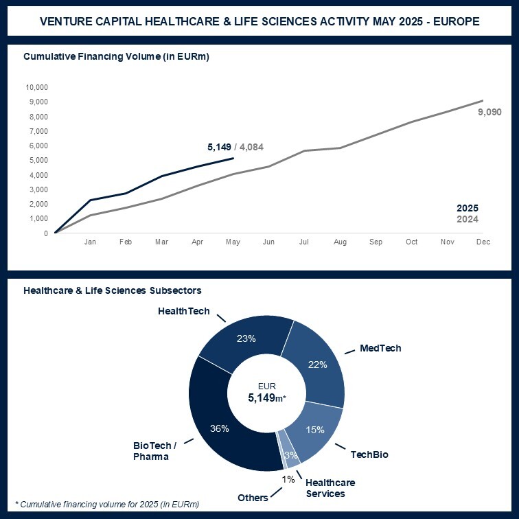 Die Gesamtfinanzierung für Healthcare & Life Sciences beläuft sich auf 5.149 Mio. EUR (+26% vs. 2024)