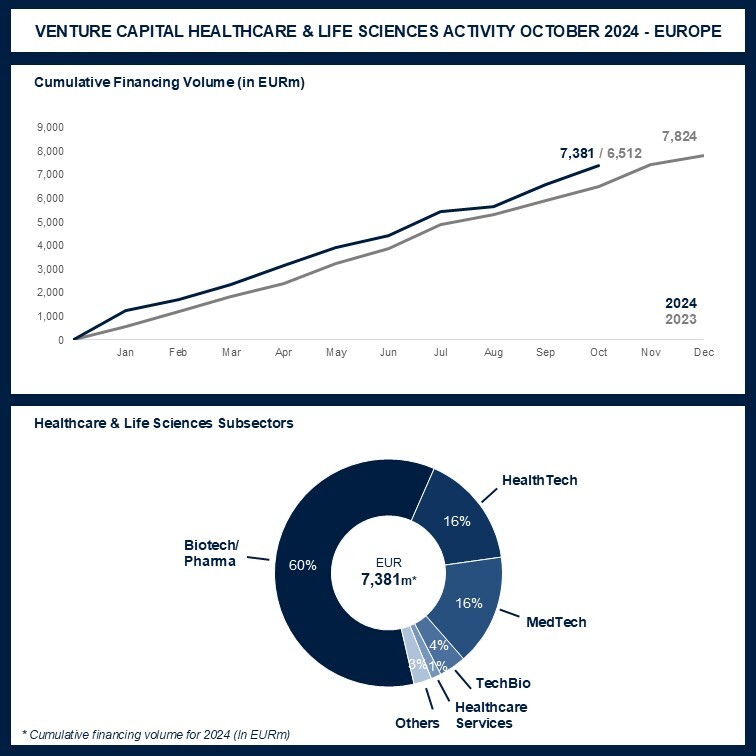 • Die Gesamtfinanzierung für Healthcare & Life Sciences beläuft sich auf 7.381 Mio. EUR