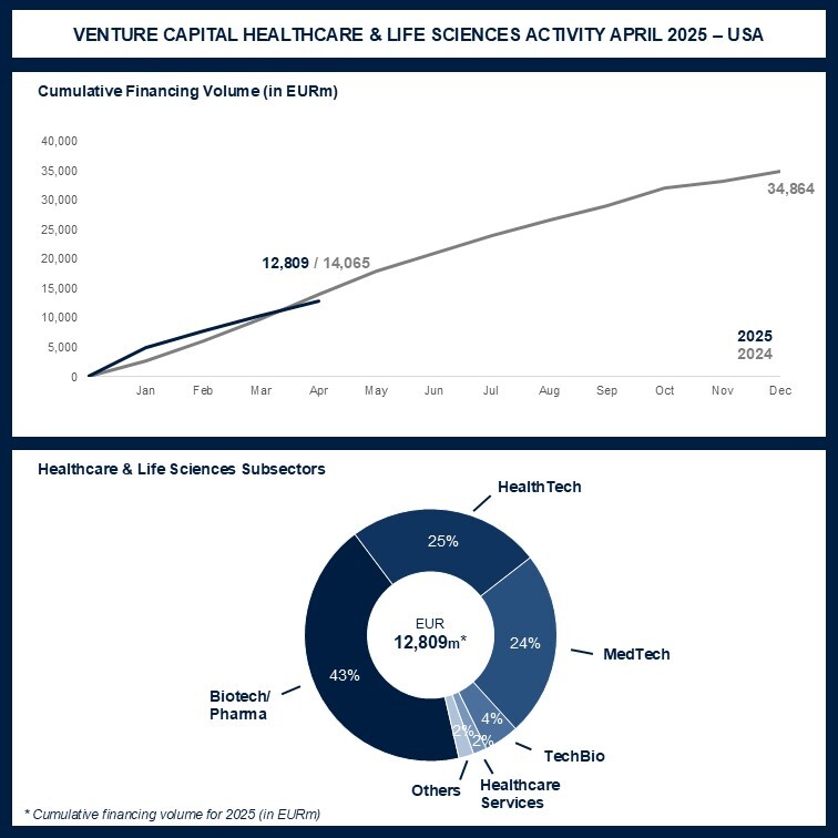 • Die Gesamtfinanzierung für Healthcare & Life Sciences beläuft sich auf 12.809 Mio. EUR (-9% vs. 2024)