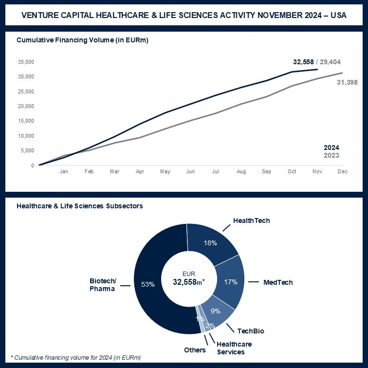 Im November sicherte sich Trace Neuroscience mit 93 Mio. EUR das höchste Transaktionsvolumen, gefolgt von TRexBio mit 78 Mio. EUR und ZAP Surgical mit 72 Mio. EUR